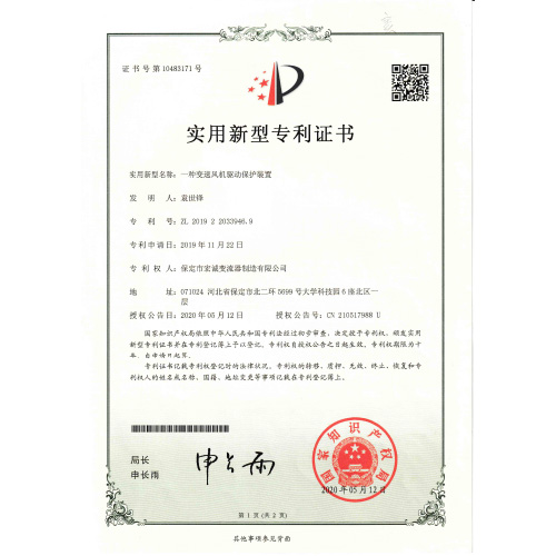 • 實(shí)用新型專(zhuān)利證書(shū)一種變速風(fēng)機(jī)驅(qū)動(dòng)保護(hù)裝置