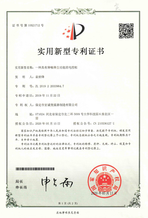• 實(shí)用新型證書(shū)一種具有降噪降塵功能的電控柜