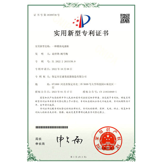 • 一種模塊電源柜實(shí)用新型專(zhuān)利證書(shū)