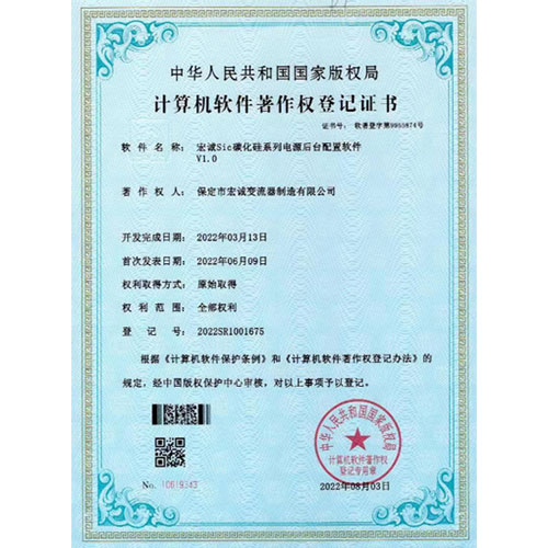 • 計(jì)算機(jī)軟件著作權(quán)登記證書(shū)--Sic碳化硅系列電源后臺(tái)配置軟件V1.0
